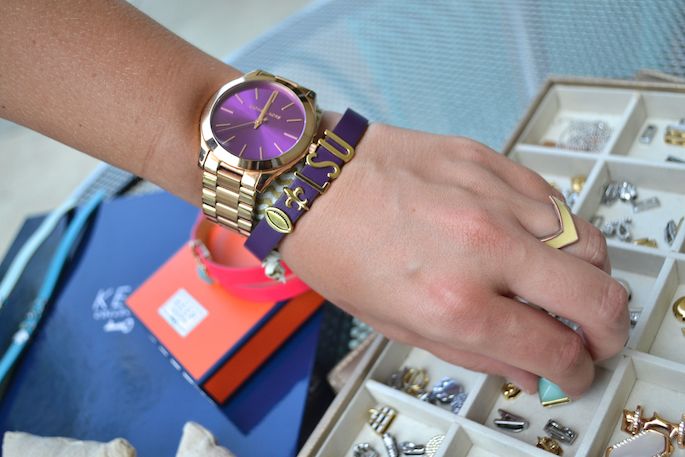 Y’all know me- I couldn’t not style an LSU bracelet with football season only 59 days away! But who’s counting? Pick a band that matches your school colors and get to styling!
