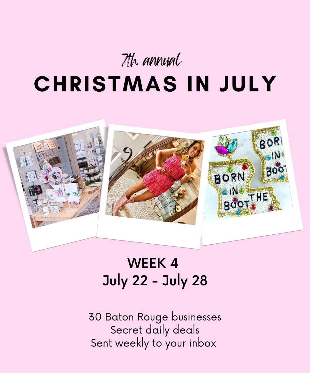 Welcome to Week 4 of Christmas in July! I’ve teamed up with 30 Baton Rouge businesses to bring you secret deals all month long.