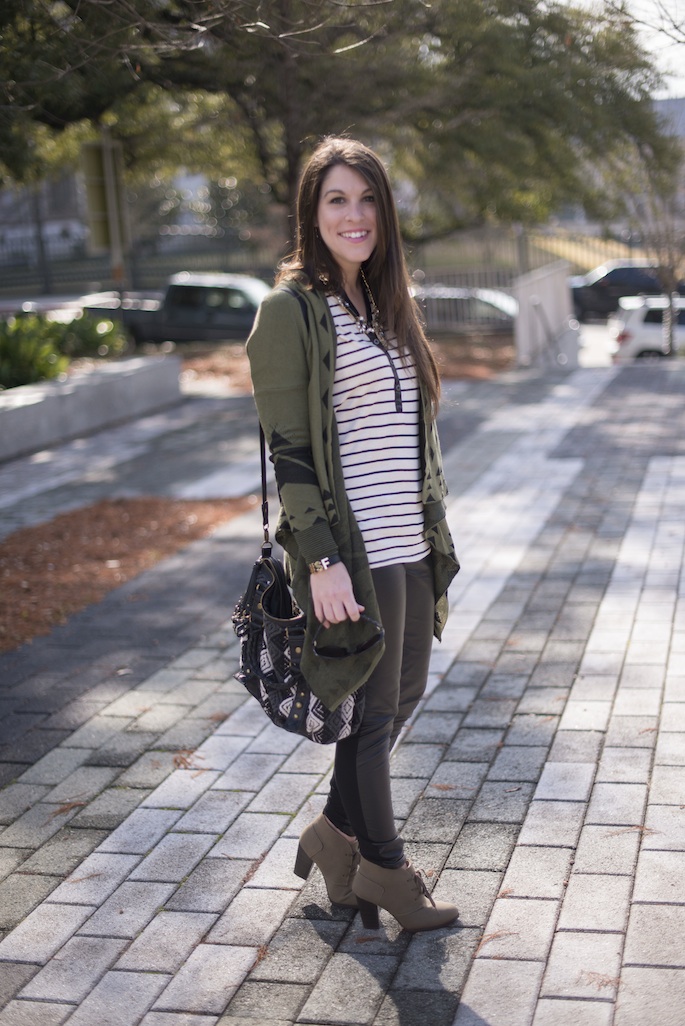 Product Information: Tribal print cardigan from Groopdealz | Leather pants from JCPenney (on clearance!) | Jasmine Ankle Boots (similar here and here) | Michael Kors Watch from Macy’s